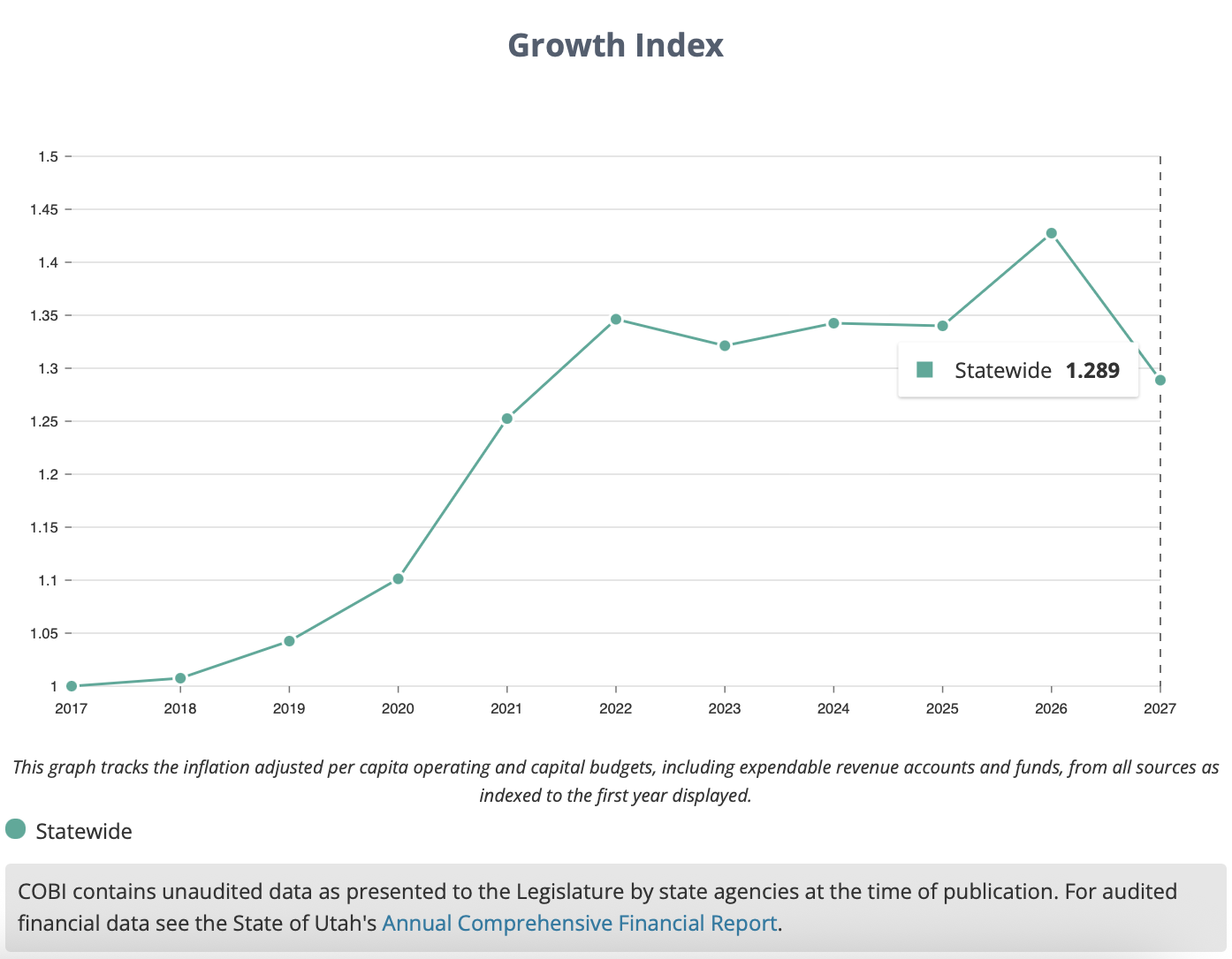 Utah is now spending about 29% more per person than in 2017, even after accounting for inflation. The "lean budget" conversation isn't about going back to 2017 levels—it's about not letting spending grow any higher from this elevated baseline. Think of it this way: If your household budget went from $50,000/year to $64,000/year in just a few years, even "belt-tightening" at $64,000 is still a lot more than you used to spend.