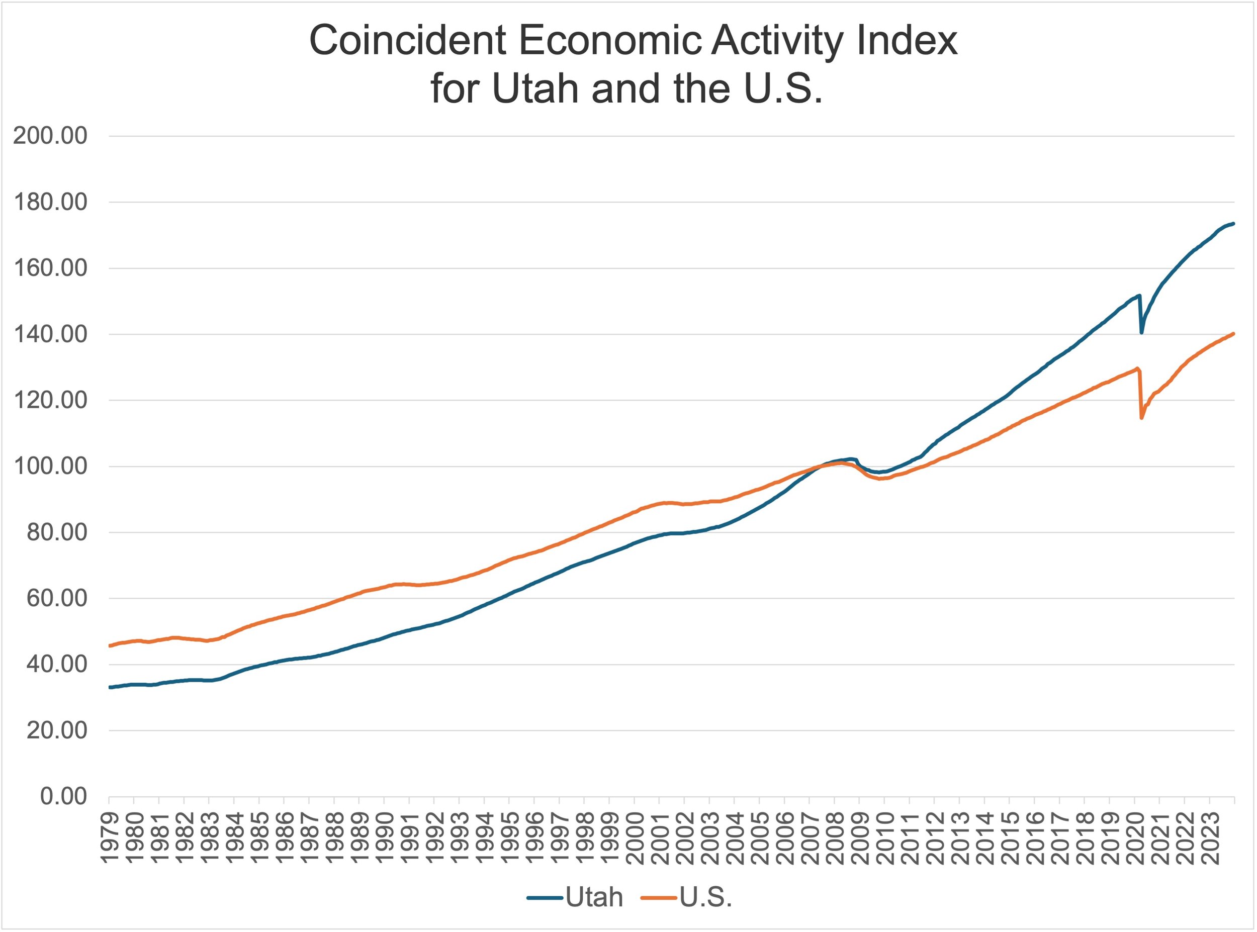 Figure 2. Coincident Economic Activity Index for Utah and the U.S.